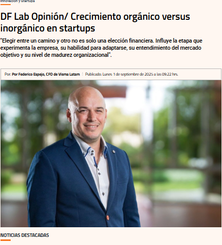 En su columna de opinión titulada “Crecimiento orgánico versus inorgánico en startups”, Federico Espejo, CFO de Visma Latam, analiza las dos principales rutas de expansión empresarial: